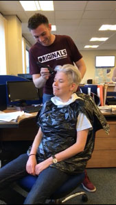 On the day, Primaflow’s Birmingham-based sales office was transformed into a temporary salon, with Marie’s manager Matt Wallace acting as hairdresser. Colleagues rallied round to help, baking an array of treats and collecting money which was added to that raised via Marie’s online page. Discussing her new hairstyle a few days after the event, Marie commented: