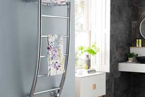 A convenient dual-purpose solution, Carina by Vogue (UK) epitomises modern heating design via the bold “D section” tubing, ample hanging space and practical top shelf!