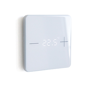 KNX eTR 101 is a heating controller for the KNX building bus system. The switch-sized control unit is placed on site in the room. The controller automatically ensures the desired room temperature and enables individual readjustment via touch surfaces. The simple user interface allows use in both private and commercial areas, especially in hotels, where the user wants to adjust the room temperature quickly and intuitively. "Plus" and "minus" for setting are understood internationally and are supplemented by a temperature value display. The real glass surface is both elegant and durable. The design language matches many current furnishing styles.