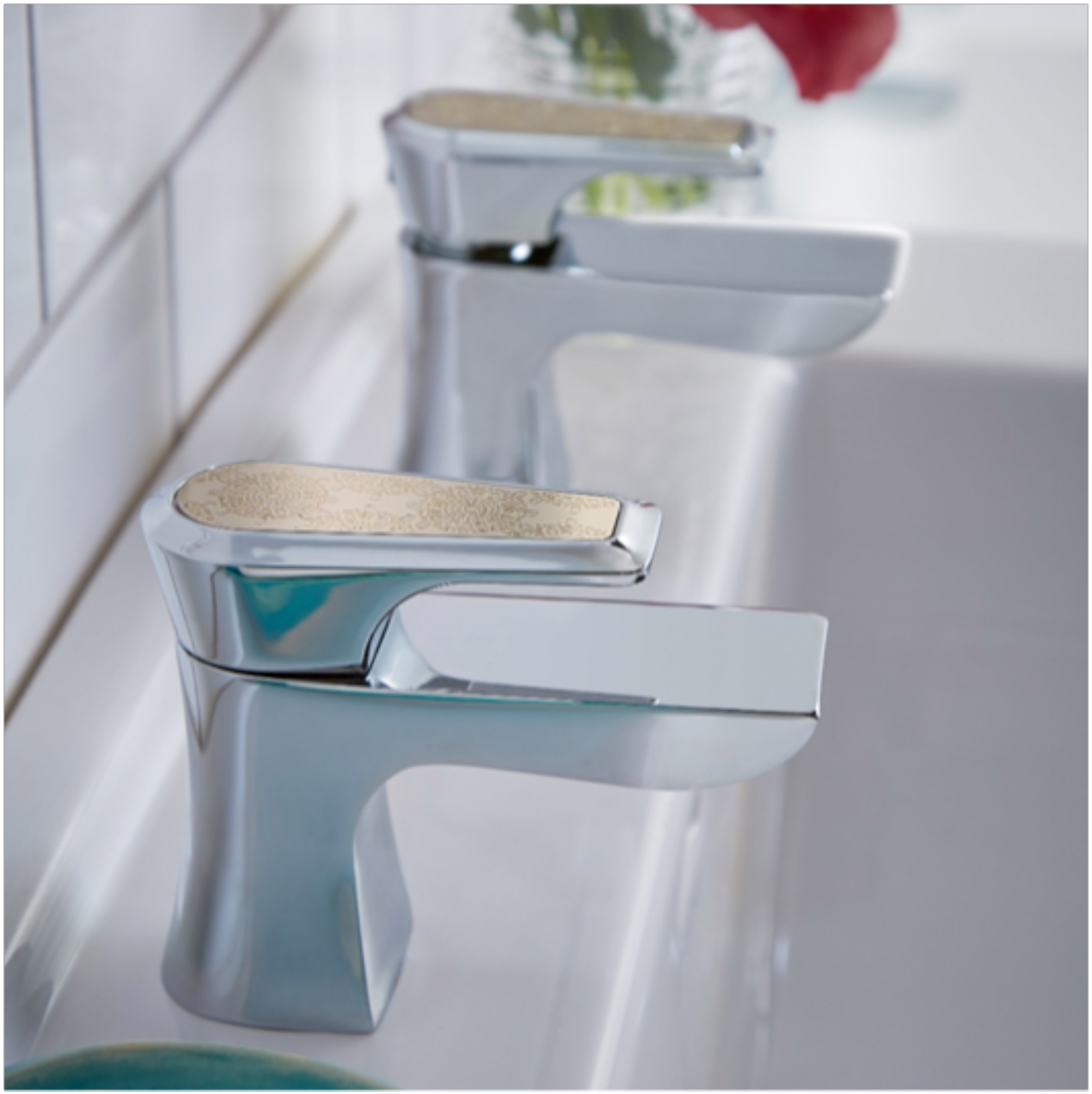 The lace effect etched gold inlay has been paired with Heritage’s brand new tap range called Lymington, to combine the enduring popularity of lace with the trend of mixed materials within current interior designs. With a flared and curvaceous chrome handle, this range ensures consumers can embrace the trend for warm metal tones in the bathroom whilst still benefiting from the timeless appeal of classic chrome.