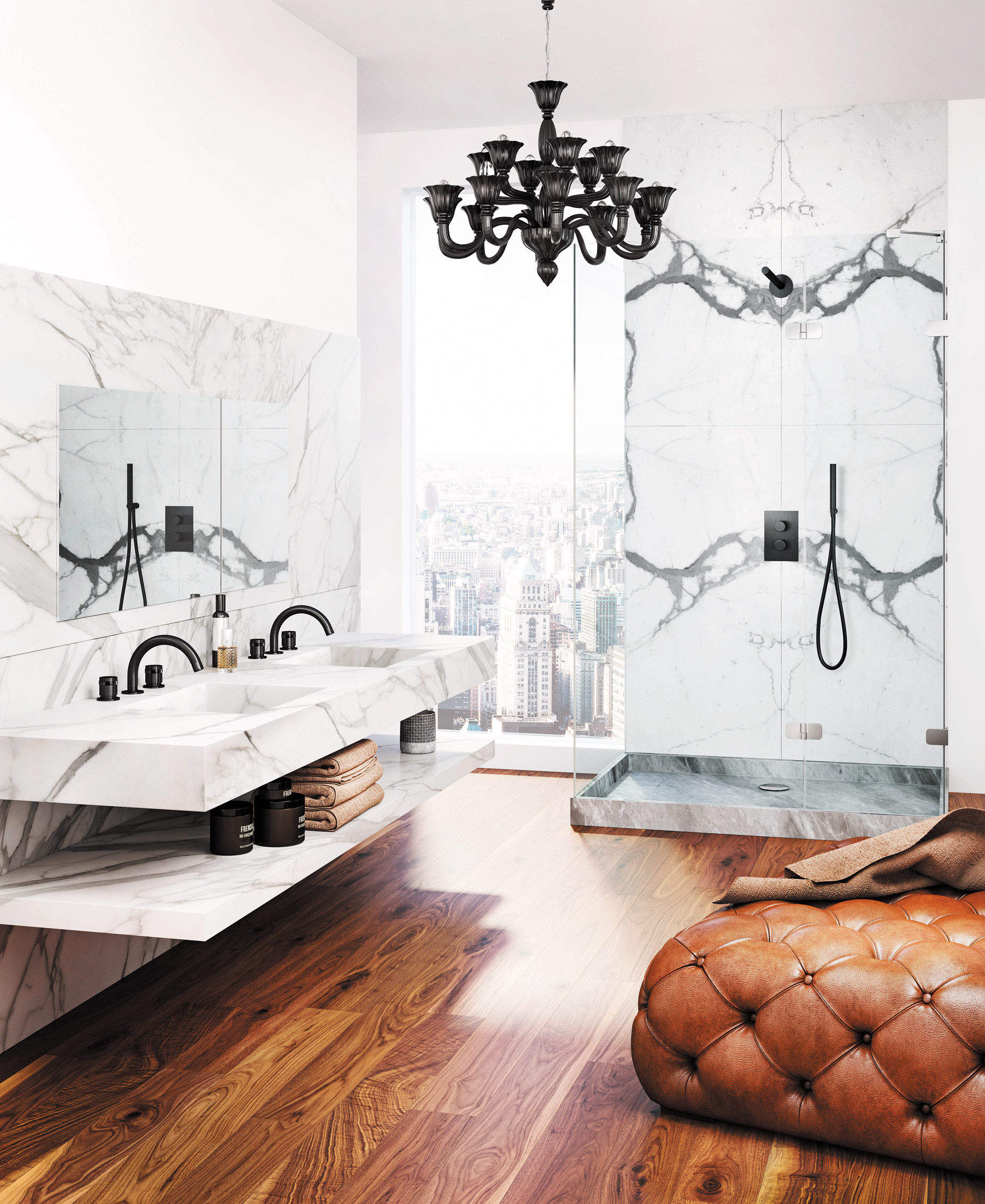 The new MB439 Thermostatic Valve and AC920 Hand Shower with flexible hose in Black Steel controls both the water temperature and flow from a single feed, the MB349 valve is framed by a rectangular base plate with two round handles which are stacked vertically and feature high precision knurling for a secure grip. The MB439 Black Steel Thermostatic Valve by MGS is priced from £536 and the AC920 Black Steel Shower System is £315, both including vat.
